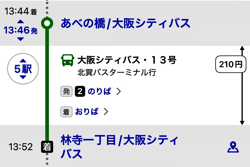 そこから昼の部(14時開演)ならば、大阪シティバス13号、北巽バスターミナル行へ。