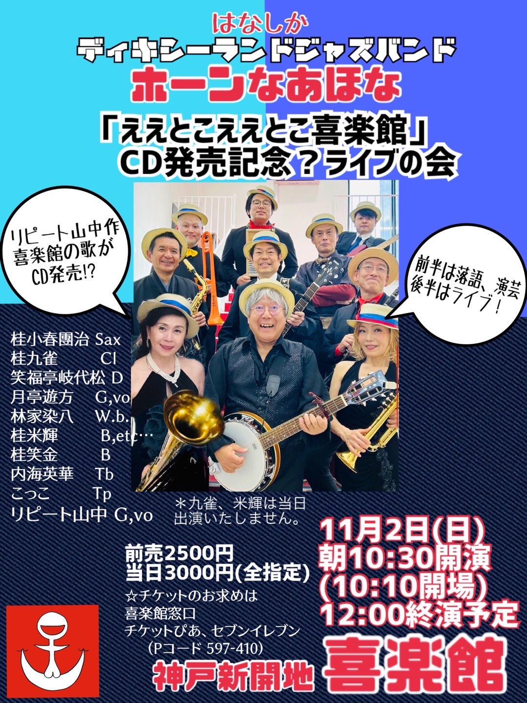 日時:11月2日(日)午前10時30分開演(10時開場) 場所:神戸新開地・喜楽館(各線「新開地」駅東改札③番出 口より徒歩2分) 出演 …
