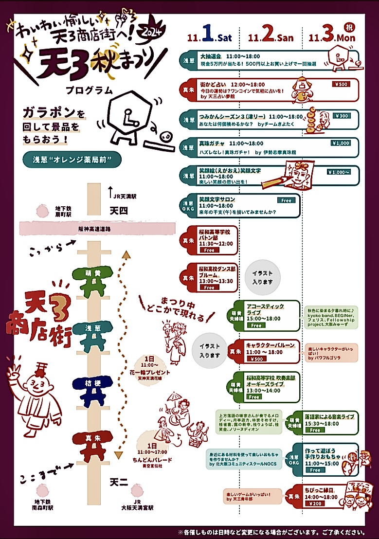 日時:11月3日(月祝)午後3時15分開演(6時終演予定) 場所:天神橋筋三丁目商店街 夫婦橋西側(地下鉄「扇町」 駅④出口すぐ) 出演 …