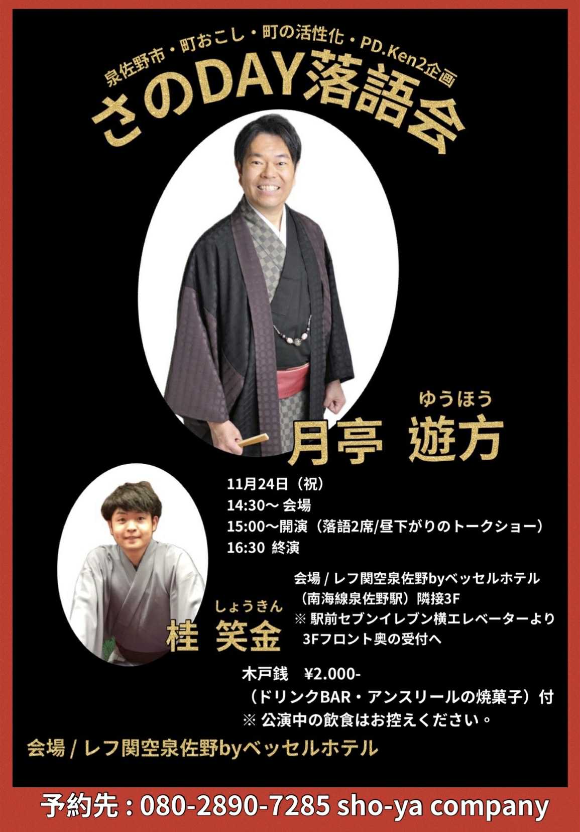 日時:11月24日(月祝)午後3時開演(2時30分開場) 場所:レフ関空泉佐野byベッセルホテルズ(南海「泉佐野」 駅東出口すぐそば、3 …
