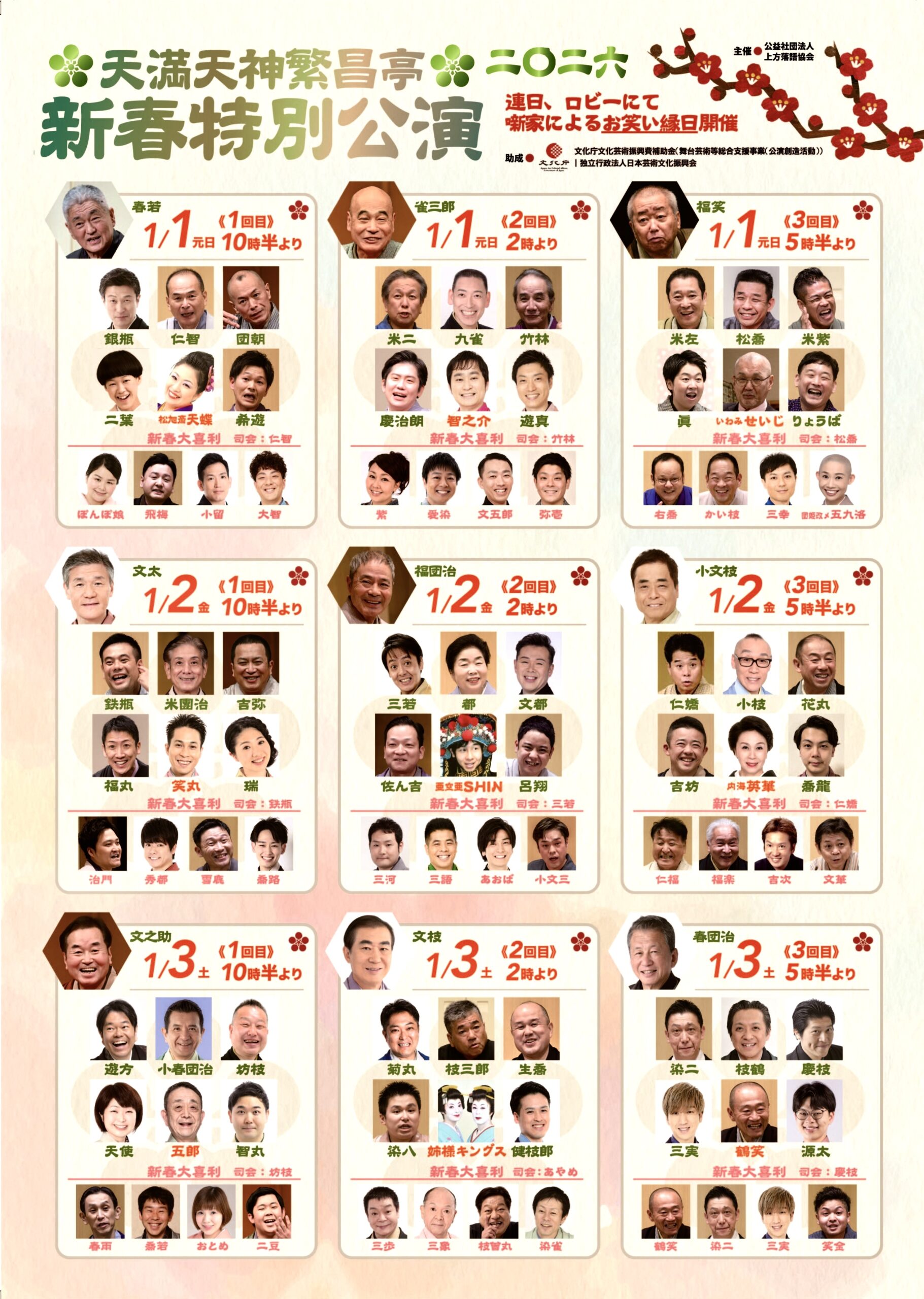 問合せ:06-6352-4874(天満天神繁昌亭)