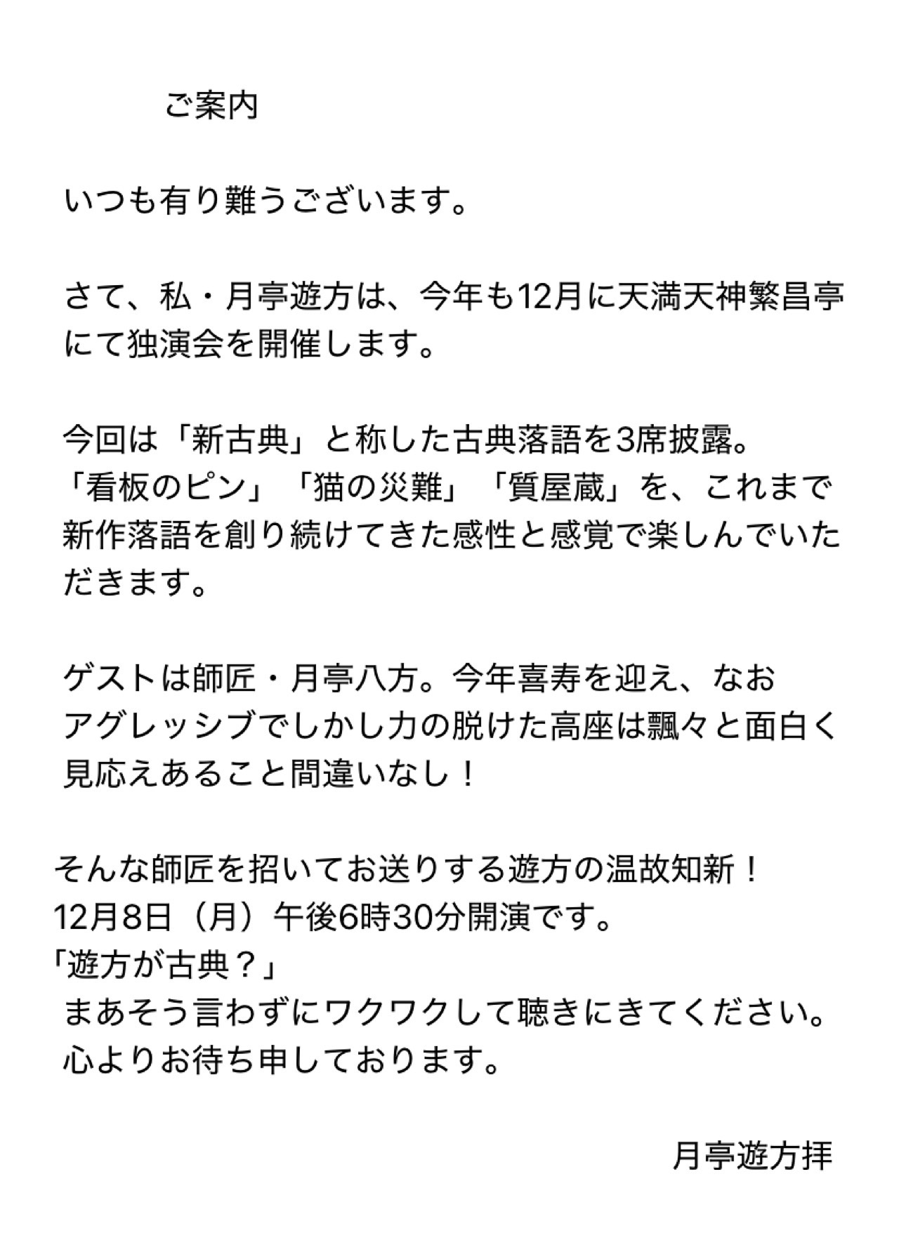 月亭遊方独演会 〜新古典派宣言〜